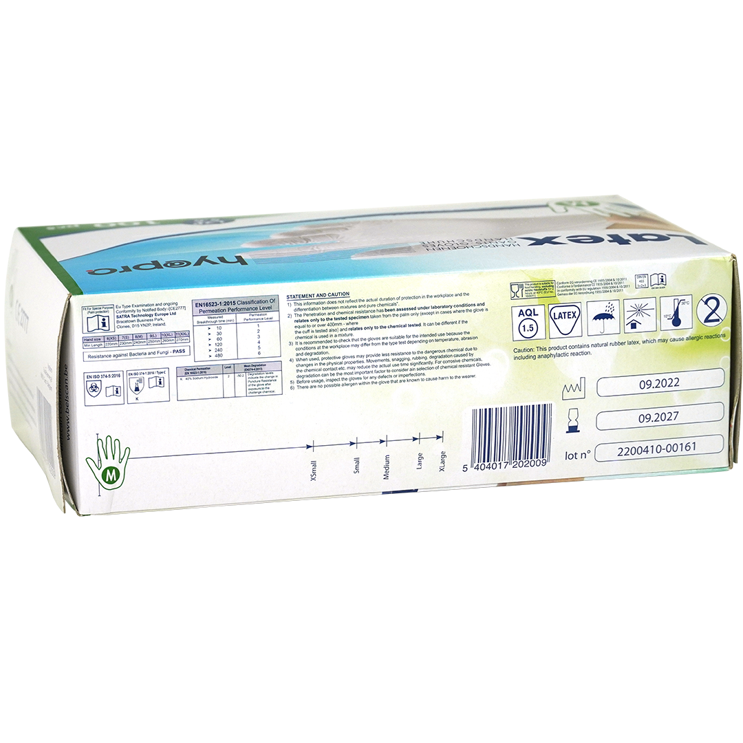 hy@pro M5.8 latex handschoenen, M, poedervrij, wit, onsteriel (100)
