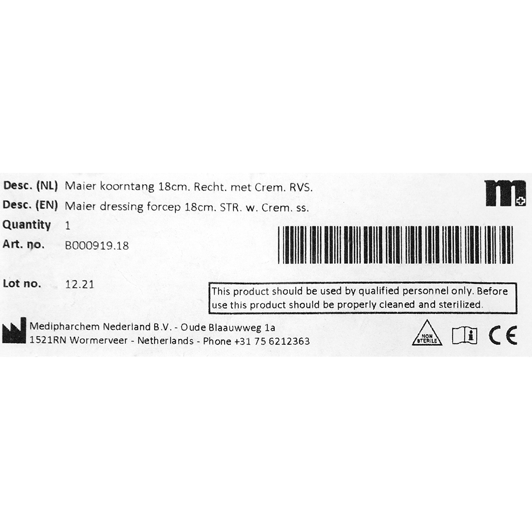 Maier koorntang, 18cm, recht, met sper (1)